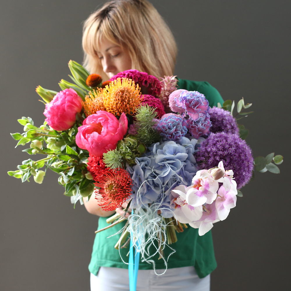 Букет "коралловый риф" из самых необычных цветов.